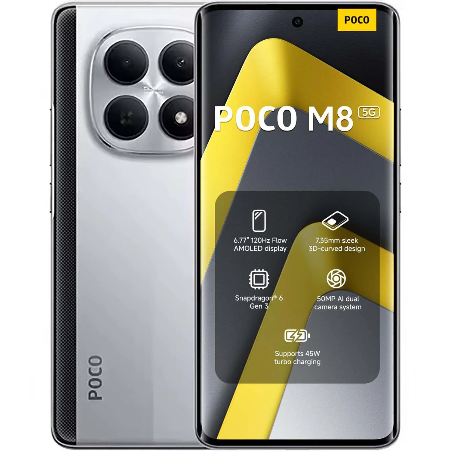POCO M8 là bản nâng cấp hoàn hảo so với thế hệ trước. Với thiết kế mỏng nhẹ, màn hình cong và cảm biến vân tay dưới màn hình, giúp nó cao cấp hơn hoàn toàn so với POCO M7.